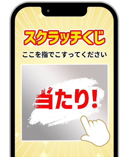 当たり・ハズレ画⾯の出し分けのほか、指やマウスで削るスクラッチくじ表⽰もお選びいただけます。当たりは1等・2等など複数種類の設定が可能。